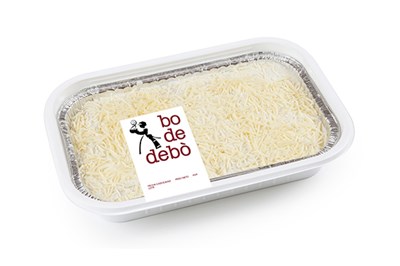 Salsa beixamel (51%) [llet pasteuritzada, farina de blat, oli refinat de gira-sol, ceba fregida (ceba, oli d'oliva verge, sal), conservadors (sorbat de potassi, àcid sòrbic), sal, midó modificat, nou moscada] , farcit (33%) (carn de pollastre, papada de porc, llet pasteuritzada, ceba fregida [ceba, oli d'oliva verge, sal], salsa tartufata [xampinyó (Agaricus bisporus), oli refinat de gira-sol, aigua, tòfona d'estiu (Tuber aestivum Vitt)(0,03%), midó d'arròs, sal, julivert deshidratat, all deshidratat, fibres vegetals, aromes], patata, ceba fregida deshidratada [ceba, oli refinat de gira-sol], bloc de foie-gras [foie-gras d'ànec (1%), aigua, sal, sucre, antioxidant [àcid ascòrbic]], brou concentrat de pollastre [aigua, sal, sucre, extracte de llevat, extracte de pollastre, greix de pollastre, aromes, midó modificat de blat de moro, acidulant [àcid cítric]], sal, conservador [sorbat potàssic]), pasta alimentària fresca cuita (sèmola de blat dur, farina de blat, aigua), formatge en pols (llet).