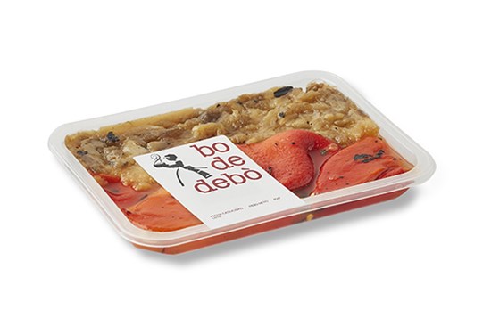 Pimiento rojo (58%), berenjena (38%), aceite de oliva y sal.